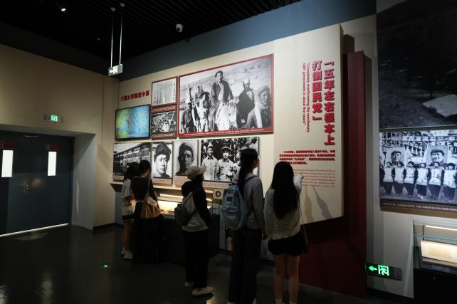 抵达纪念馆后,师生们在参观序厅,“风雨苍黄”,“天翻地覆”,“人间正道”,“胜利之都”,纪念厅等展览中,通过战役实物、影像史料与场景还原,系统学习了渡江战役从战略谋划到决战决胜的全过程,深刻体悟到战役胜利既是军事智慧的结晶,更是人民群众划着小船送大军过江铸就的民心丰碑。