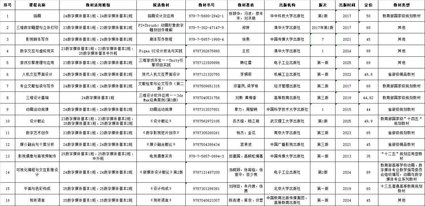 公示时间:2025年12月31日至2026年1月7日。公示期间如对选用教材有任何意见或建议,请实名向传媒学院反映。